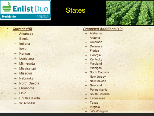Current (15) <BR>Arkansas <BR>Illinois <BR>Indiana <BR>Iowa <BR>Kansas <BR>Louisiana <BR>Minnesota <BR>Mississippi <BR>Missouri <BR>Nebraska <BR>North Dakota <BR>Oklahoma <BR>Ohio <BR>South Dakota <BR>Wisconsin<BR>Proposed Additions (19) <BR>Alabama <BR>Arizona <BR>Colorado <BR>Delaware <BR>Florida <BR>Georgia <BR>Kentucky <BR>Maryland <BR>Michigan <BR>North Carolina <BR>New Jersey <BR>New Mexico <BR>New York <BR>Pennsylvania <BR>South Carolina <BR>Tennessee <BR>Texas <BR>Virginia <BR> West Virginia. <BR> <BR>States<BR>