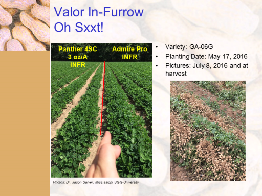Valor In-Furrow Oh Sxxt!<BR>Variety: GA-06G <BR>Planting Date: May 17, 2016 <BR>Pictures: July 8, 2016 and at harvest<BR>Panther 4SC <BR>3 oz/A <BR>INFR<BR>Photos: Dr. Jason Sarver, Mississippi State University<BR>Admire Pro <BR>INFR<BR>