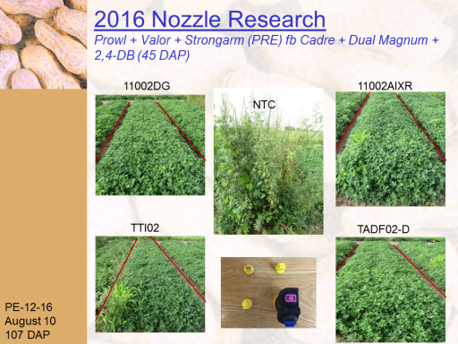 2016 Nozzle Research Prowl + Valor + Strongarm (PRE) fb Cadre + Dual Magnum + 2,4-DB (45 DAP)<BR>PE-12-16 <BR>August 10 <BR>107 DAP<BR>11002DG<BR>11002AIXR<BR>TTI02<BR>TADF02-D<BR>NTC<BR>