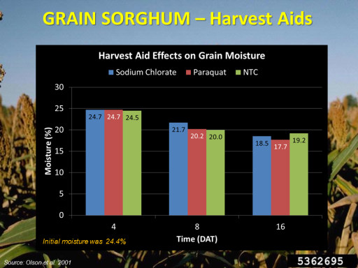 GRAIN SORGHUM – Harvest Aids<BR>Initial moisture was  24.4%<BR>Source: Olson et al. 2001<BR>