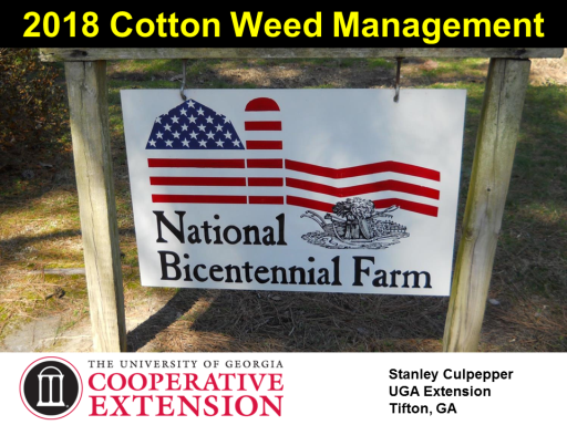 Stanley Culpepper <BR>UGA Extension <BR>Tifton, GA<BR>2018 Cotton Weed Management<BR>