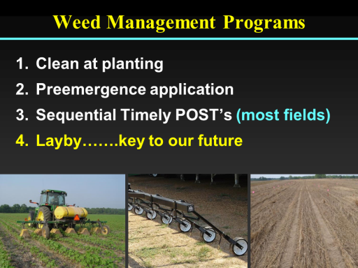 Weed Management Programs<BR>Clean at planting <BR>Preemergence application  <BR>Sequential Timely POST’s (most fields) <BR>Layby…….key to our future<BR>