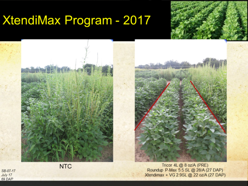 XtendiMax Program - 2017<BR>SB-07-17 <BR>July 17 <BR>69 DAP<BR>NTC<BR>Tricor 4L @ 8 oz/A (PRE) <BR>Roundup P-Max 5.5 SL @ 28/A (27 DAP) <BR>Xtendimax + VG 2.9SL @ 22 oz/A (27 DAP)<BR>