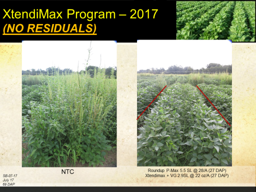 XtendiMax Program – 2017 (NO RESIDUALS)<BR>SB-07-17 <BR>July 17 <BR>69 DAP<BR>NTC<BR>Roundup P-Max 5.5 SL @ 28/A (27 DAP) <BR>Xtendimax + VG 2.9SL @ 22 oz/A (27 DAP)<BR>
