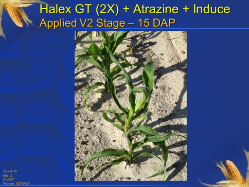 Halex GT (2X) + Atrazine + Induce  Applied V2 Stage – 15 DAP<BR>CN-04-18 <BR>May 2 <BR>21 DAT <BR>Pioneer 1870YHR<BR>
