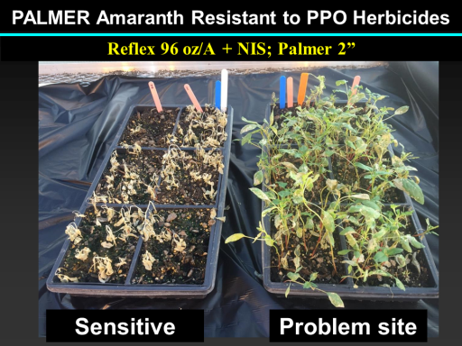 Sensitive<BR>Problem site<BR>Reflex 96 oz/A + NIS; Palmer 2”<BR>PALMER Amaranth Resistant to PPO Herbicides<BR>