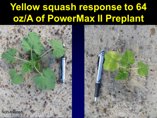 Yellow squash response to 64 oz/A of PowerMax II Preplant<BR>Non-treated<BR>