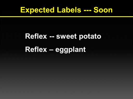 Expected Labels --- Soon  <BR>Reflex -- sweet potato <BR>Reflex – eggplant<BR>