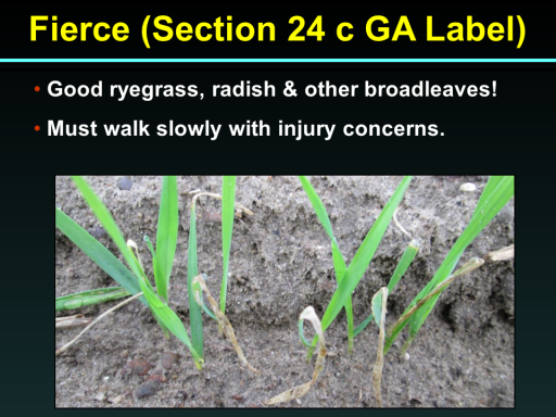 Good ryegrass, radish & other broadleaves! <BR> Must walk slowly with injury concerns.<BR>Fierce (Section 24 c GA Label)<BR>