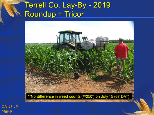 Terrell Co. Lay-By - 2019 Roundup + Tricor<BR>CN-11-19 <BR>May 9<BR>**No difference in weed counts (#/250’) on July 15 (67 DAT)<BR>