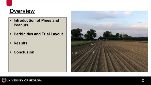 Overview<BR>Introduction of Pines and Peanuts <BR> <BR>Herbicides and Trial Layout <BR> <BR>Results <BR> <BR>Conclusion<BR>