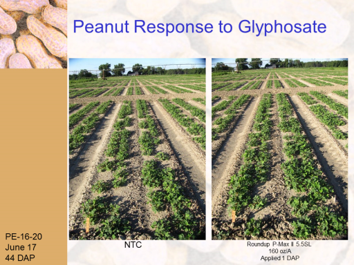 Peanut Response to Glyphosate<BR>PE-16-20 <BR>June 17 <BR>44 DAP<BR>NTC<BR>Roundup P-Max II 5.5SL  <BR>160 oz/A <BR>Applied 1 DAP<BR>