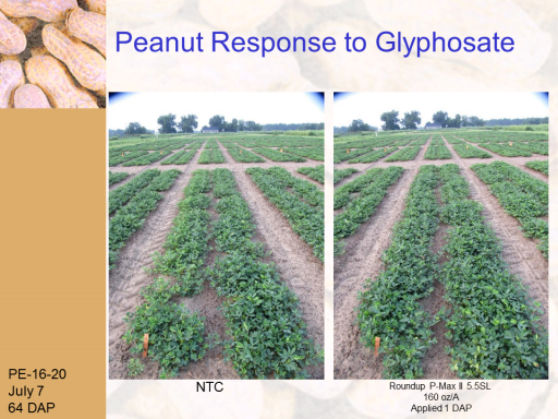 Peanut Response to Glyphosate<BR>PE-16-20 <BR>July 7 <BR>64 DAP<BR>NTC<BR>Roundup P-Max II 5.5SL  <BR>160 oz/A <BR>Applied 1 DAP<BR>