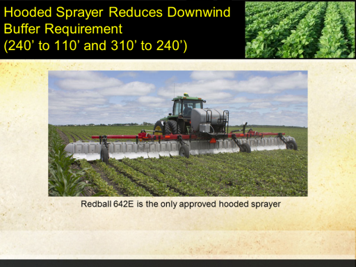 Hooded Sprayer Reduces Downwind Buffer Requirement  (240’ to 110’ and 310’ to 240’)<BR>Redball 642E is the only approved hooded sprayer<BR>