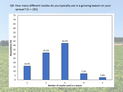 Q9: How many different nozzles do you typically use in a growing season on your sprayer? [n = 181] <BR>