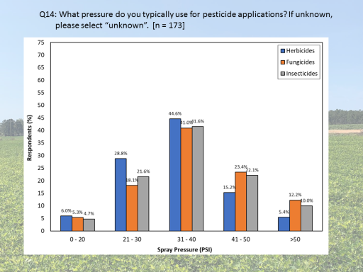 Q14: What pressure do you typically use for pesticide applications? If unknown, please select “unknown”.  [n = 173]<BR>