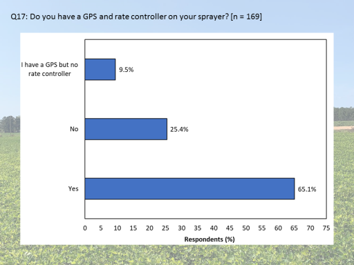 Q17: Do you have a GPS and rate controller on your sprayer? [n = 169]<BR>