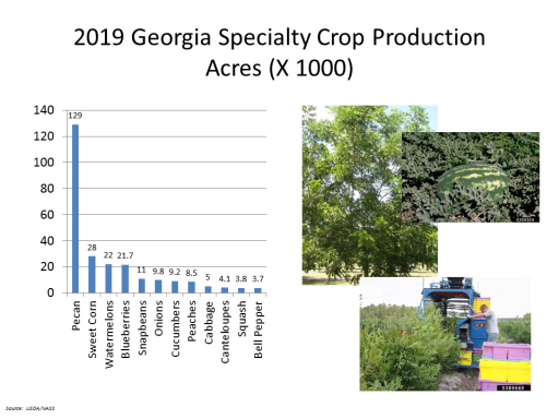 2019 Georgia Specialty Crop Production Acres (X 1000)<BR>Source:  USDA/NASS<BR>