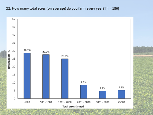 Q2: How many total acres (on average) do you farm every year? [n = 186]<BR>