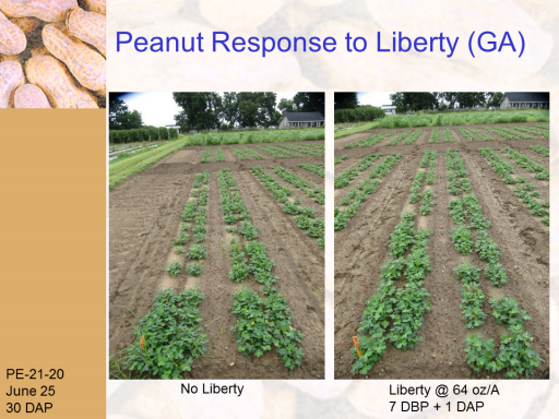 Peanut Response to Liberty (GA)<BR>PE-21-20 <BR>June 25 <BR>30 DAP<BR>No Liberty<BR>Liberty @ 64 oz/A <BR>7 DBP + 1 DAP<BR>