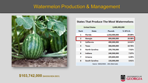 Watermelon Production & Management<BR>$103,742,000 (NASS/USDA 2021)<BR>