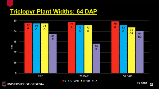 Triclopyr Plant Widths: 64 DAP<BR>P<.0001<BR>