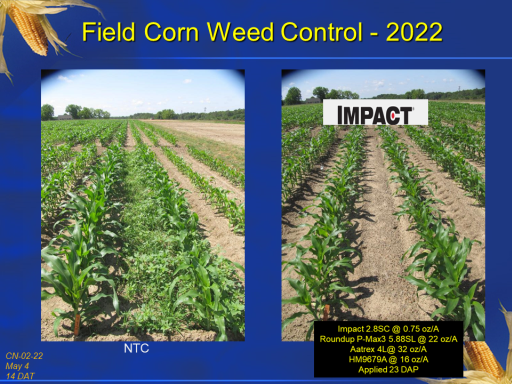 Field Corn Weed Control - 2022<BR>CN-02-22 <BR>May 4 <BR>14 DAT<BR>NTC<BR>