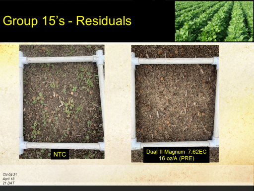 Group 15’s - Residuals <BR>CN-04-21 <BR>April 18 <BR>21 DAT<BR>NTC<BR>Dual II Magnum 7.62EC <BR>16 oz/A (PRE)<BR>