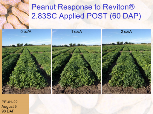 Peanut Response to RevitonŽ 2.83SC Applied POST (60 DAP)<BR>PE-01-22 <BR>August 9 <BR>98 DAP<BR>