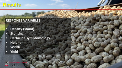Results<BR>RESPONSE VARIABLES: <BR> <BR>Density (stand) <BR>Stunting <BR>Herbicide symptomology <BR>Height <BR>Width <BR>Yield<BR>