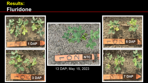 Results: <BR>Fluridone<BR>1 DAP<BR>13 DAP; May 15, 2023<BR>3 DAP<BR>7 DAP<BR>5 DAP<BR>NTC<BR>