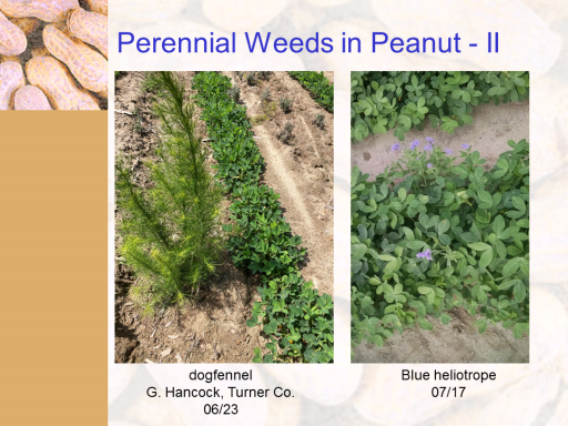 Perennial Weeds in Peanut - II<BR>dogfennel <BR>G. Hancock, Turner Co. <BR>06/23<BR>Blue heliotrope <BR>07/17<BR>