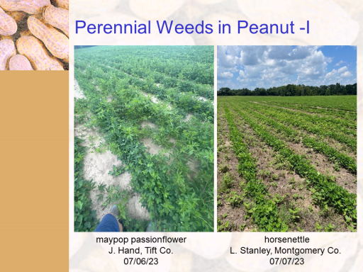 Perennial Weeds in Peanut -I<BR>maypop passionflower <BR>J. Hand, Tift Co. <BR>07/06/23<BR>horsenettle <BR>L. Stanley, Montgomery Co.  <BR>07/07/23<BR>