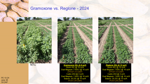 Gramoxone vs. Reglone - 2024<BR>PE-10-24 <BR>June 28  <BR>59 DAP<BR>NTC<BR>Gramoxone 3SL @ 8 oz/A <BR>Storm 4SL @ 16 oz/A <BR>Dual Magnum 7.62EC @ 16 oz/A <BR>EPOST (13 DAP) <BR>Cadre 2AS @ 4 oz/A <BR>Dual Magnum 7.62EC @ 16 oz/A <BR>Butyrac 20 2SL @ 16 oz/A <BR>POST (34 DAP)<BR>Reglone 2SL @ 12 oz/A <BR>Storm 4SL @ 16 oz/A <BR>Dual Magnum 7.62EC @ 16 oz/A <BR>EPOST (13 DAP) <BR>Cadre 2AS @ 4 oz/A <BR>Dual Magnum 7.62EC @ 16 oz/A <BR>Butyrac 20 2SL @ 16 oz/A <BR>POST (34 DAP)<BR>