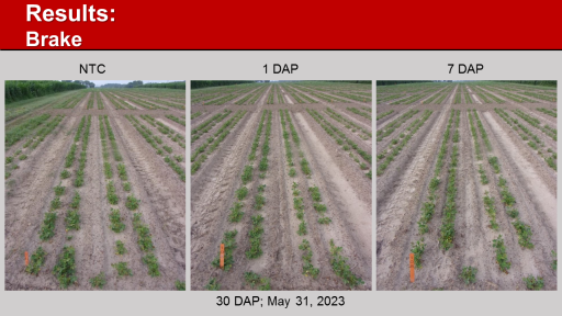 Results: <BR>Brake<BR>NTC<BR>30 DAP; May 31, 2023<BR>1 DAP<BR>7 DAP<BR>