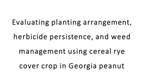 Evaluating planting arrangement, herbicide persistence, and weed management using cereal rye cover crop in Georgia peanut<BR>