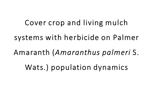 Cover crop and living mulch systems with herbicide on Palmer Amaranth (Amaranthus palmeri S. Wats.) population dynamics<BR>
