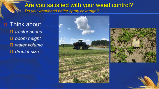 Are you satisfied with your weed control? Do you want/need better spray coverage?<BR> Think about …… <BR> tractor speed <BR> boom height <BR> water volume <BR> droplet size <BR>