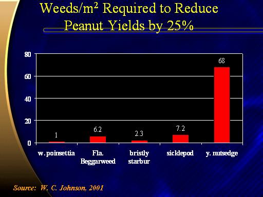 Weeds/m2 Required to Reduce Peanut Yields by 25%<BR>Source:  W. C. Johnson, 2001<BR>
