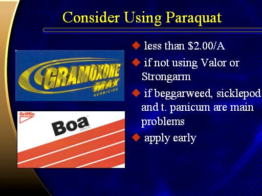 <BR> if beggarweed, sicklepod and t. panicum are main problems