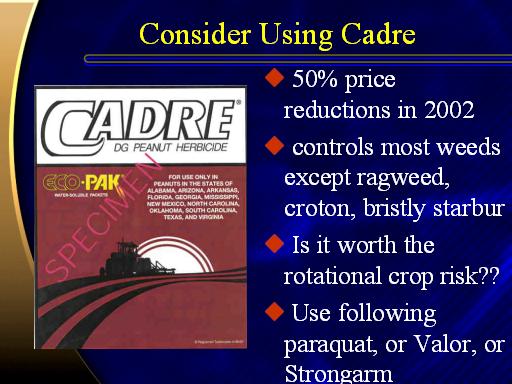 Consider Using Cadre<BR> 50% price reductions in 2002