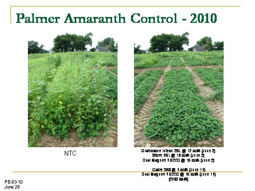 Palmer Amaranth Control - 2010<BR>PE-03-10 <BR>June 29<BR>NTC<BR>Gramoxone Inteon 2SL @ 12 oz/A (June 2) <BR>Storm 4SL @ 16 oz/A (June 2) <BR>Dual Magnum 7.62EC @ 16 oz/A (June 2) <BR> <BR>Cadre 2AS @ 4 oz/A (June 14) <BR>Dual Magnum 7.62EC @ 16 oz/A (June 14) <BR>(5790 lbs/A)<BR>