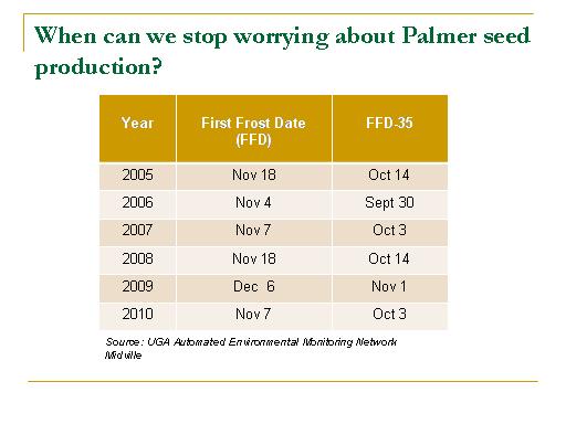 When can we stop worrying about Palmer seed production?<BR>Source: UGA Automated Environmental Monitoring Network <BR>Midville<BR>