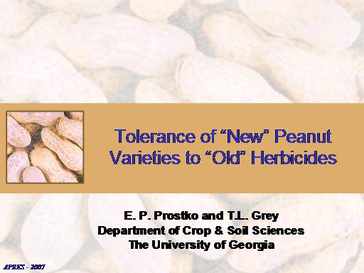 Tolerance of “New” Peanut Varieties to “Old” Herbicides<BR>E. P. Prostko and T.L. Grey <BR>Department of Crop & Soil Sciences <BR>The University of Georgia<BR>APRES - 2007<BR>