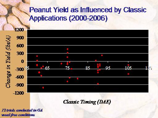 Peanut Yield as Influenced by Classic Applications (2000-2006)<BR>12 trials conducted in GA <BR>weed-free conditions<BR>