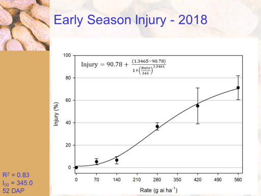 Early Season Injury - 2018<BR>R2 = 0.83 <BR>I50 = 345.0 <BR>52 DAP<BR>