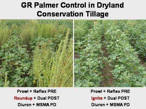 GR Palmer Control in Dryland Conservation Tillage<BR>Prowl + Reflex PRE <BR>Roundup + Dual POST <BR>Diuron + MSMA PD<BR>Prowl + Reflex PRE <BR>Ignite + Dual POST <BR>Diuron + MSMA PD<BR>