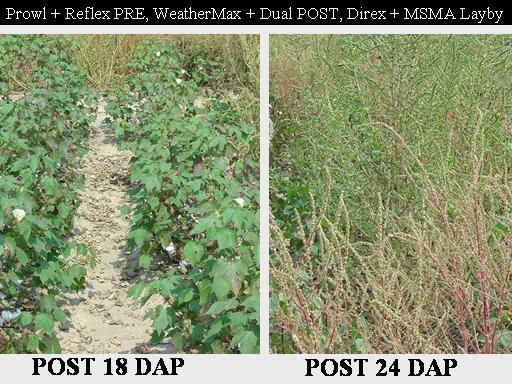 Prowl + Reflex PRE, WeatherMax + Dual POST, Direx + MSMA Layby<BR>POST 18 DAP<BR>POST 24 DAP<BR>