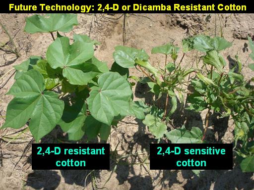 Future Technology: 2,4-D or Dicamba Resistant Cotton<BR>2,4-D resistant cotton<BR>2,4-D sensitive cotton<BR>