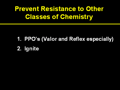 Prevent Resistance to Other Classes of Chemistry<BR>  PPO’s (Valor and Reflex especially) <BR>  Ignite<BR>